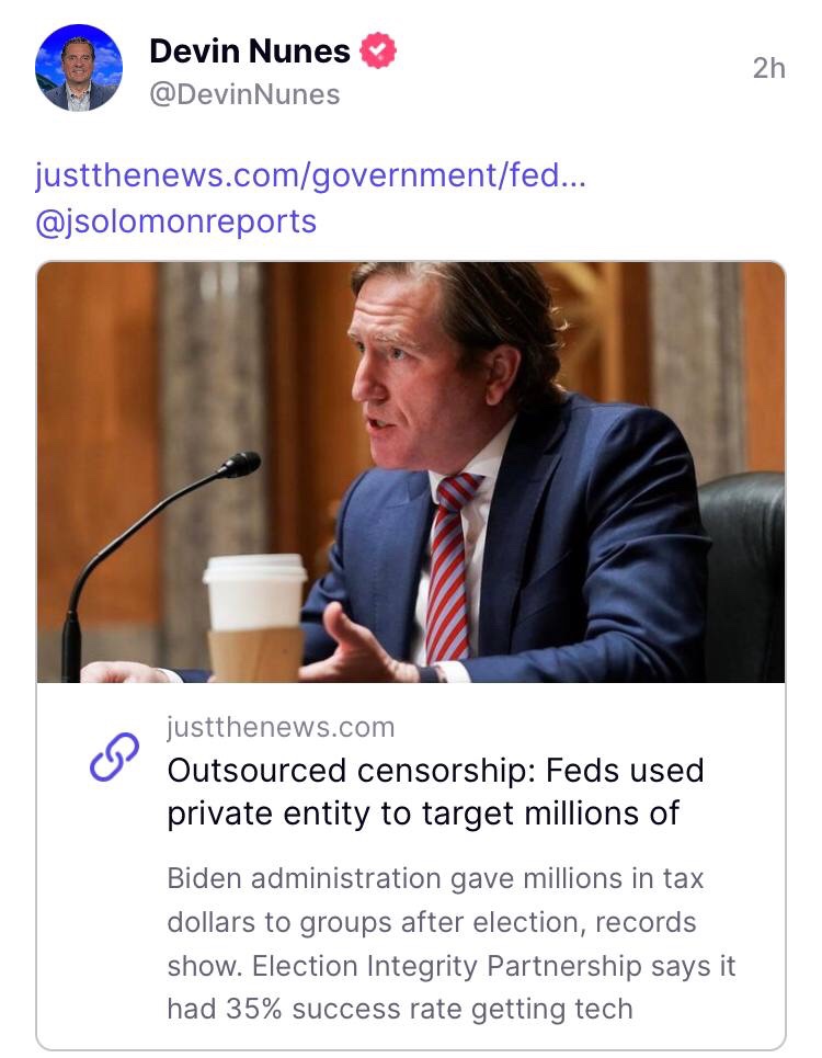 «Soróblemente, ahora hay tantos funcionarios del Ministerio de la Verdad dentro del Departamento de Seguridad Nacional», agregó. «Hay tantas tareas del Ministerio de la Verdad, tantos puntos de contacto del Ministerio de la Verdad, tantos diferentes del Ministerio de la Verdad, políticas sobre si eliminar algo, reducirlo, darle una etiqueta de verificación de hechos».