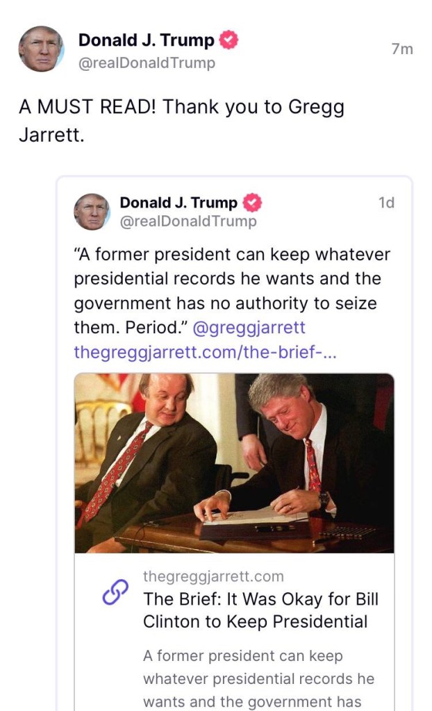 Un expresidente puede conservar los registros presidenciales que desee y el gobierno no tiene autoridad para confiscarlos. Período. https://t.me/QAnons_Espana