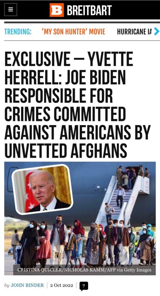 La culpa, dijo Herrell en una entrevista exclusiva con Breitbart News de SiriusXM Patriot el sábado , es de Biden, cuyas agencias federales no examinaron adecuadamente a miles de afganos, según dos informes del Inspector General .