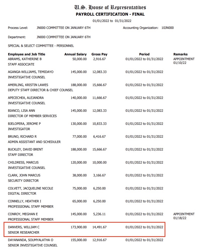 A pesar de estas preocupaciones, el ex asesor principal de Blue Star Strategies, William C. Danvers está trabajando actualmente para el Comité Selecto de la Cámara de Representantes para investigar los disturbios del 6 de enero en los EE. UU. Capitolio. Danvers está empleado como investigador sénior, según los registros del Congreso, donde gana un salario anual reportado de 173.900 dólares.