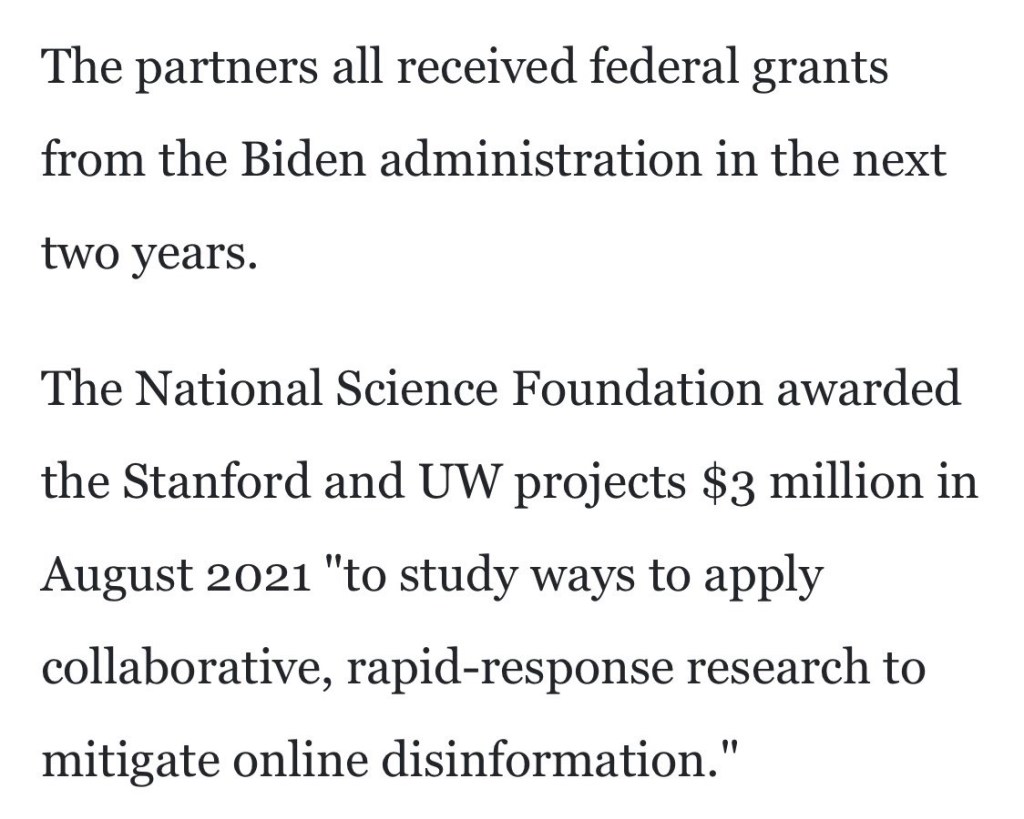 «La forma más sencilla de explicar la forma en que funciona el EIP es compararlo con algo que ya conoces», continuó Starbuck. «¿Sabes cómo la CIA y el Departamento de Defensa utilizan a los contratistas para pelear batallas que no quieren que se les vea luchando a título oficial? Eso es esencialmente el EIP, pero actúa como un Ministerio de la Verdad. Cómo funcionó: el DHS, el Departamento de Estado, el DNC, Common Cause y la NAACP presentarían tickets con el EIP en publicaciones o personas que querían censuradas. El EIP hizo el trabajo sucio de ir a Big Tech.@jsolomonReports lo desglosa perfectamente en este artículo. (justthenews.com/government/fed…) Así de fácil lo hicieron. El DHS, el DNC y otros acaban de presentar una multa ante el EIP, que luego actuó como su mensajero para exigir a Big Tech que tomara medidas en las publicaciones o personas señaladas por el Gobierno de los Estados Unidos o el DNC y su informe muestra que Big Tech entregó por ellos. El EIP creó lo que se ha llamado una «lista de enemigos» de un grupo selecto que marcaron como desinformación que necesita censura. Yo era uno de ellos y tengo la distinción de ser el único que se postulaba para el Congreso mientras el EIP trabajaba para censurarnos en nombre del gobierno».