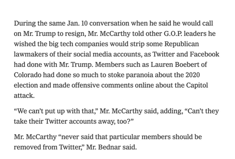 Durante la llamada, McCarthy le dijo a Liz Cheney que aconsejaría al presidente Trump que renunciara. Esto es exactamente lo que informó el libro. Liz Cheney lanzó la llamada a los autores. Y ahora Kevin McCarthy fue atrapado en un conjunto masivo de mentiras.