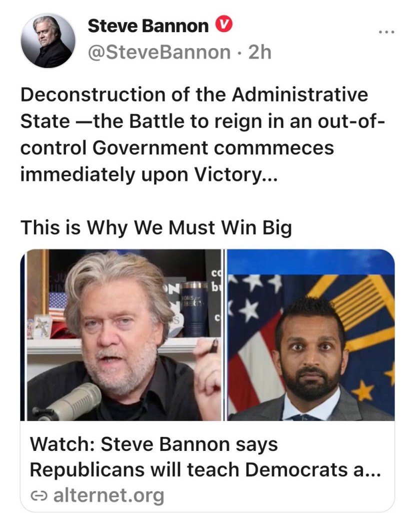 El nacionalista blanco y delincuente condenado dos veces Steve Bannon le dijo a Kash Patel, que se desempeñó como jefe de gabinete del secretario de defensa interino bajo el expresidente Donald Trump, que los republicanos van a perseguir a los demócratas «con una bayoneta» si el Partido Republicano gana mayorías en la Cámara de Representantes de los Estados Unidos y el Senado en las elecciones de mitad. https://t.me/QAnons_Espana