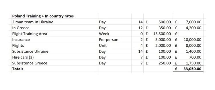 Hedges, el veterano de las fuerzas especiales, consideró que la financiación del gobierno era «esencial para poner este programa sobre una base muy firme». Se imaginaba que el patrocinio podría venir de Gran Bretaña, los Estados Unidos y Ucrania, «o incluso de los países bálticos/nórdicos». Si fuera necesaria la «separación de la financiación gubernamental de la actividad», las finanzas podrían «proporcionarse fluyendo ‘donaciones’ a través de la ONG establecida por Prevail, Rhizome Insights Ltd», un frente que sirve como la «ruta actual de la compañía para financiar equipos y capacitación», y por lo tanto le permite permanecer oculta a la vista del público.