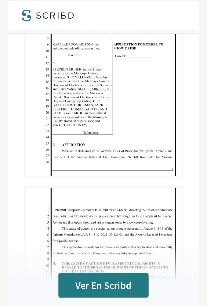 Kari Lake para Arizona v. Richer, Valenzuela, Jarrett, Gates, Hickman, Sellers, Galvin y Galardo por The Western Journal en Scribd