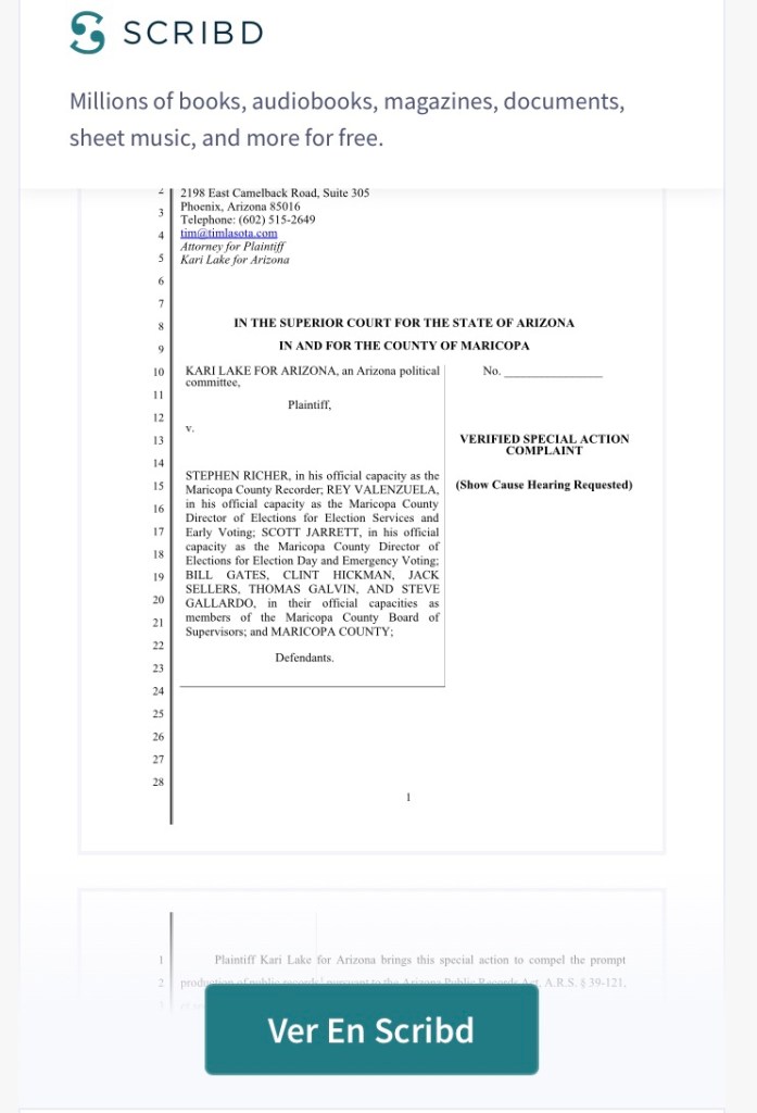 App OSC: Kari Lake para la demanda de Arizona por The Western Journal en Scribd