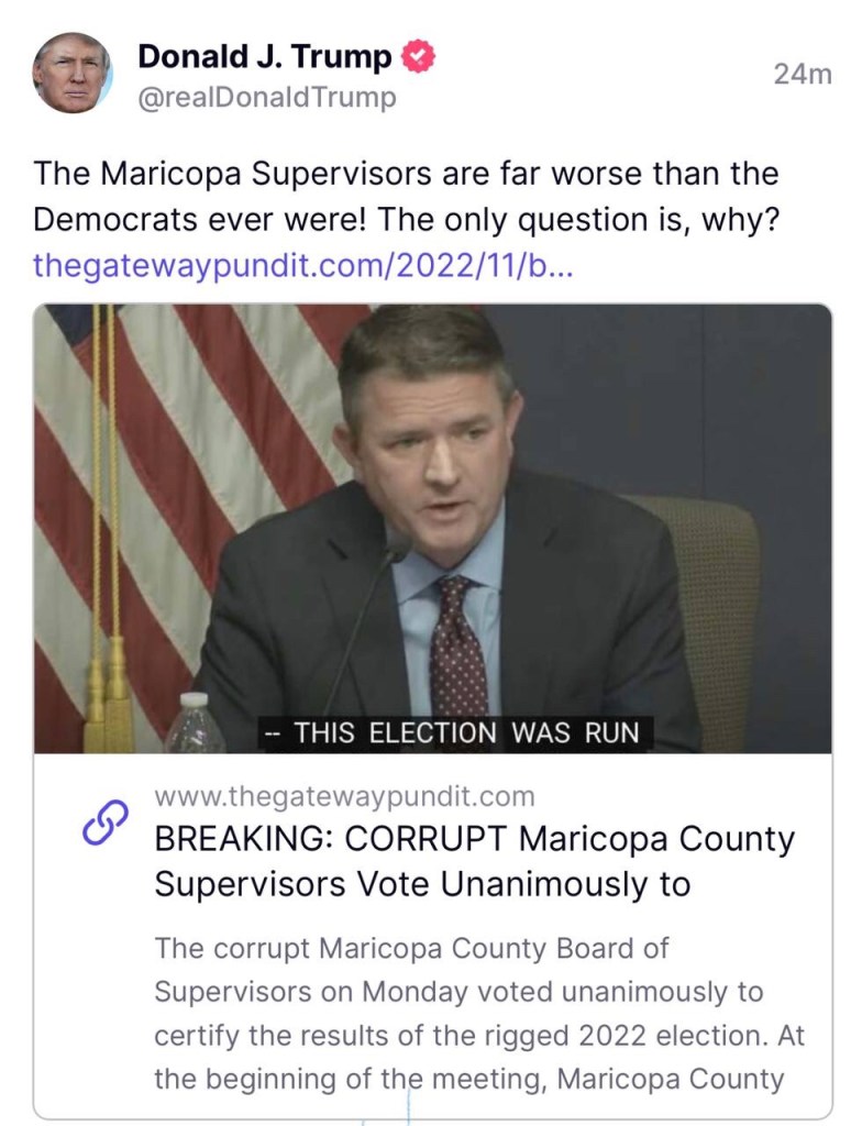 La corrupta Junta de Supervisores del Condado de Maricopa votó unánimemente para certificar los resultados de las elecciones amañadas de 2022 el lunes. https://t.me/QAnons_Espana