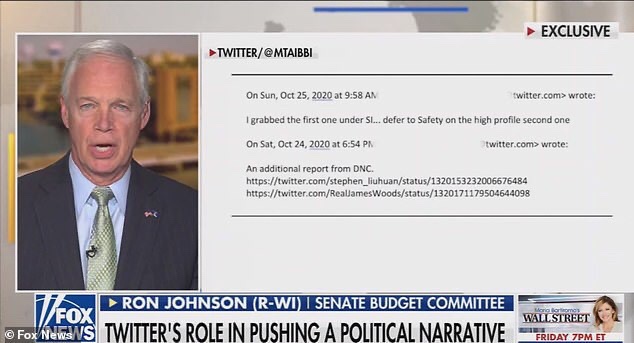 El senador republicano de Wisconsin, Ron Johnson, sugirió que su personal podría publicar una ‘línea de tiempo’ que detalla los esfuerzos de supresión en las redes sociales de la historia de la computadora portátil Hunter Biden.