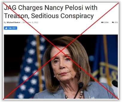 «JAG aculosa a Nancy Pelosi de traición, conspiración sediciosa», dice un titular del 3 de diciembre de 2022 de Real Raw News.