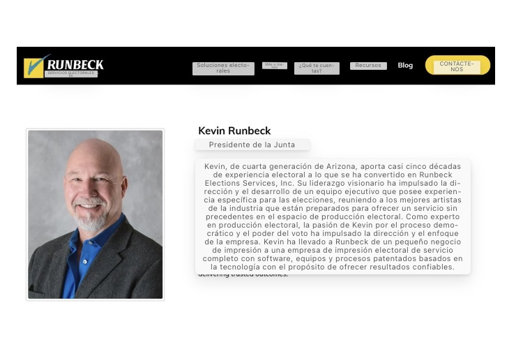 Kevin Runbeck es presidente y propietario de los Servicios Electorales de Runbeck.