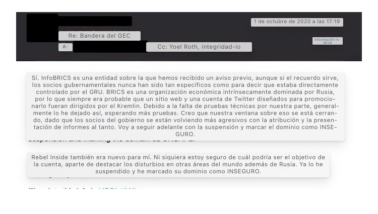 - «Otras agencias gubernamentales» terminaron compartiendo inteligencia a través del FBI y la FITF no solo con Twitter, sino con Yahoo!, Twitch, Clouldfare, LinkedIn e incluso Wikimedia: