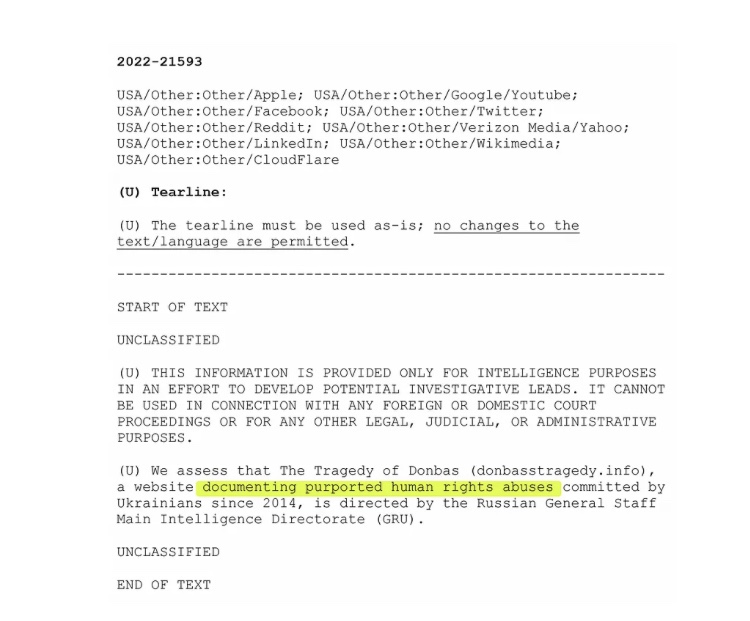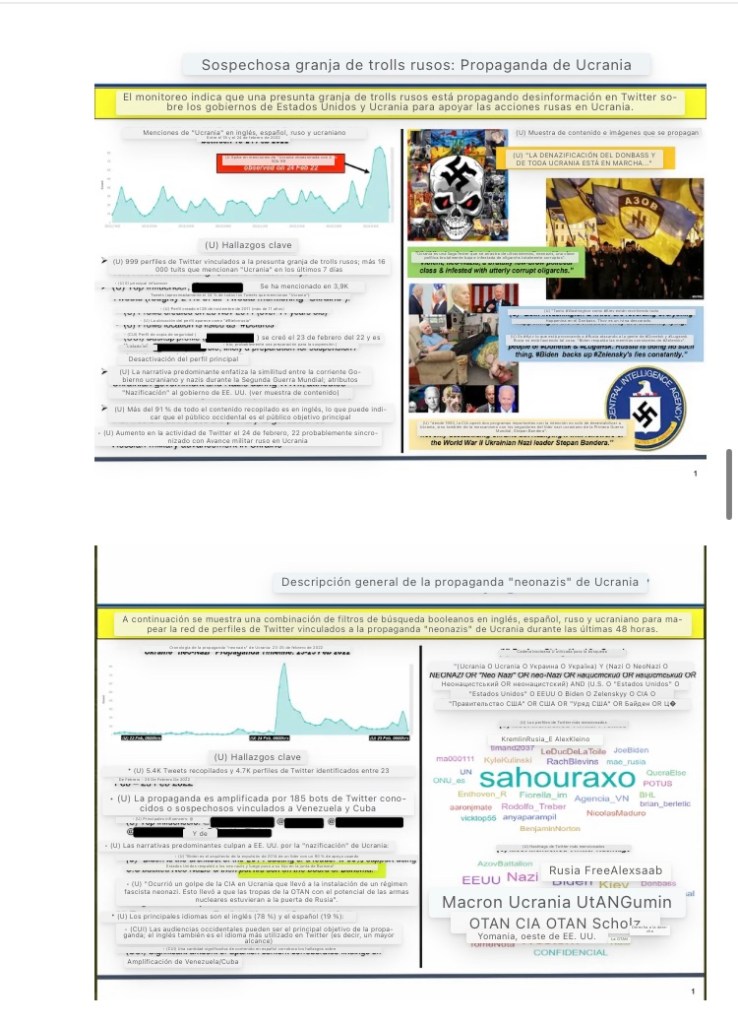 - A menudo, los informes de inteligencia son solo largas listas de periódicos, tuits o vídeos de YouTube culpables de «narrativa anti Ucrania»: