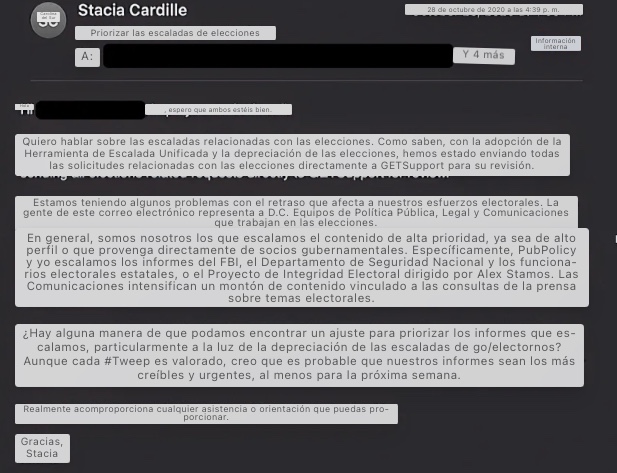 24. Hubo tantas solicitudes del gobierno que los empleados de Twitter tuvieron que improvisar un sistema para priorizarlas/probararlas: