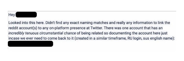 30. Sin embargo, detrás de escena, los ejecutivos de Twitter lucharon contra las afirmaciones del gobierno de interferencia extranjera, en su plataforma y otras: