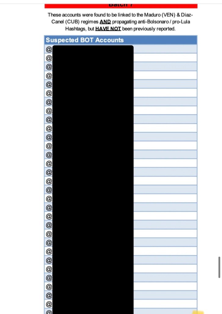 44. A menudo, la inteligencia viene en forma de informes breves, seguidos de largas listas de cuentas consideradas pro-Maduro, pro-Cuba, pro-Rusia, etc.: Este lote contenía más de 1000 cuentas condenadas a lo digital más allá: