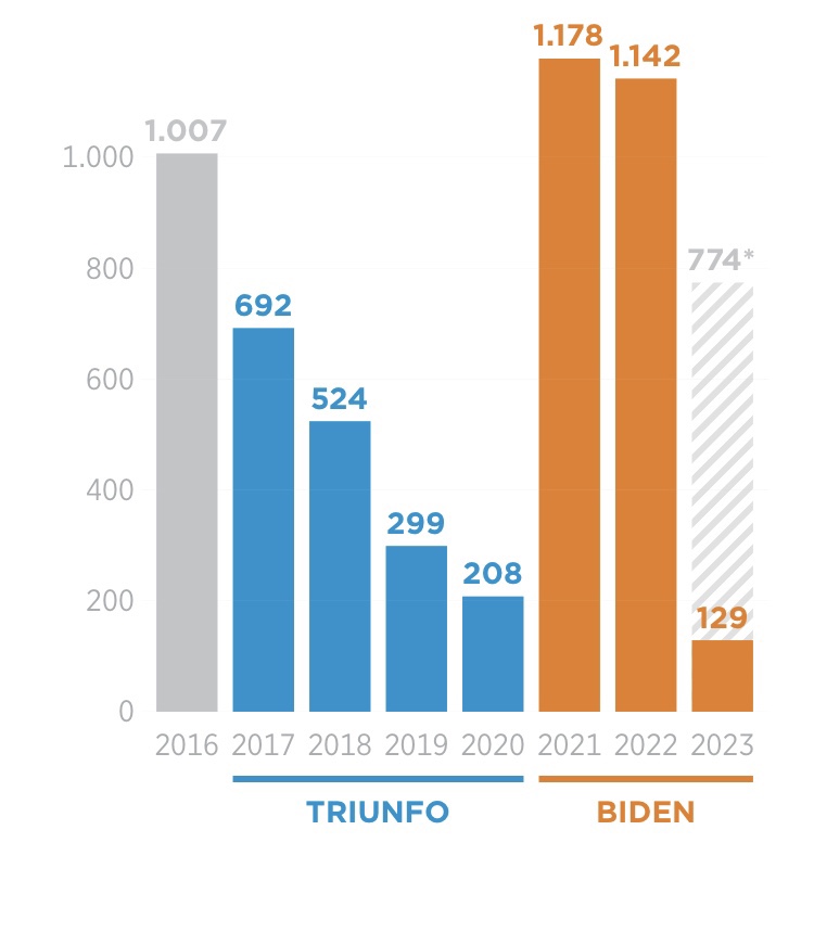La Administración Biden ha revertido muchas de las políticas de la era Trump que frenaron la ola de inmigración ilegal a los Estados Unidos. Como resultado, los encuentros convictos-criminales-extranderos, incluidos asaltos, violaciones y homicidios, se han disparado durante los dos primeros años en el cargo del presidente Biden.