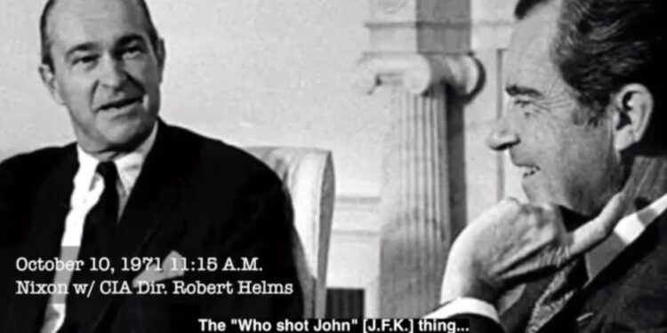 Una impresionante y largamente ignorada cinta de la era de Nixon Watergate muestra a Richard Nixon advirtiendo al director de la CIA Richard Helms que conoce la participación de la CIA en el asesinato de John F. Kennedy: «Sé quién disparó a John«.