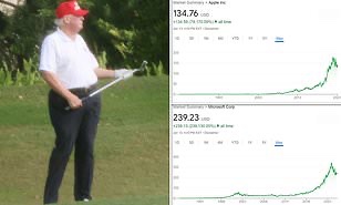 Al vender ambos hoy, Trump habría hecho un rendimiento de más de 5 millones de dólares, con acciones de Apple que cotizan a 134,76 dólares durante el fin de semana y Microsoft negociando a 239,23 dólares.