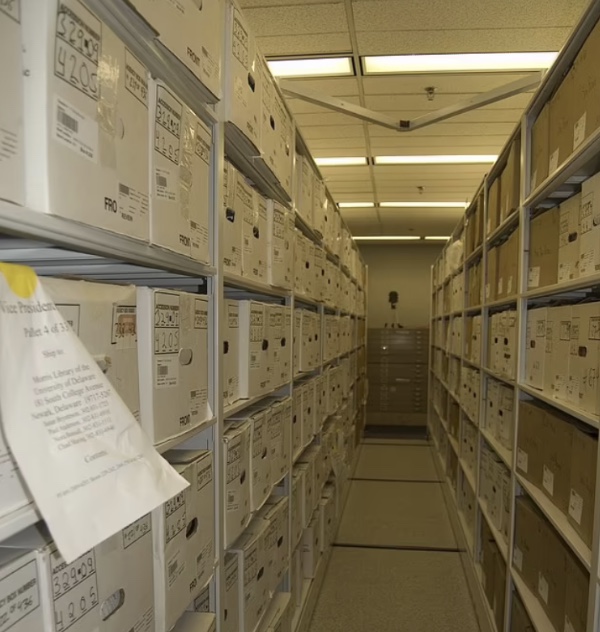 Según el sitio web de la Universidad de Delaware, «más de 1.850 cajas de registros de archivo de la carrera del Presidente en el Senado llegaron a la Biblioteca el 6 de junio de 2012».