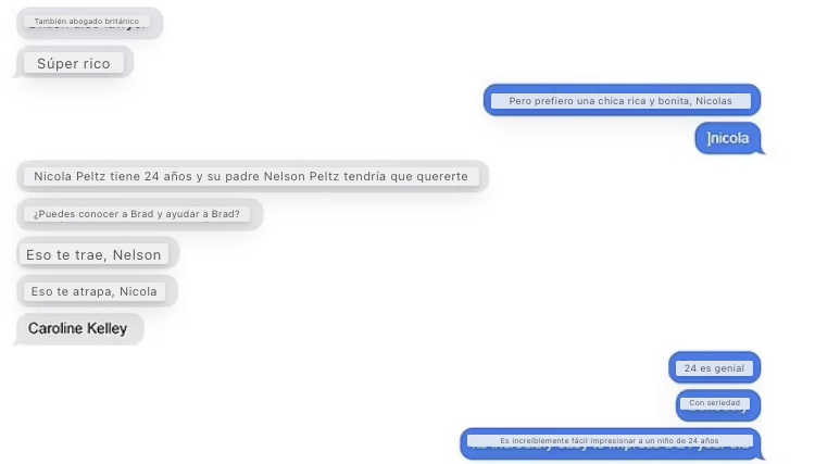 Caroline respondió: ‘Nicola Peltz!?!? Mira, te lo dije. Qué bonita es ella. Y dulce. ¿Le dijiste que eres mi prima?’