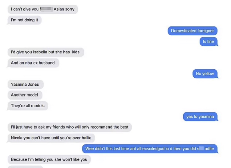 DailyMail.com ha revelado previamente extractos posteriores de la conversación de texto, en la que Hunter utilizó aparentes insultos racistas contra los asiáticos.