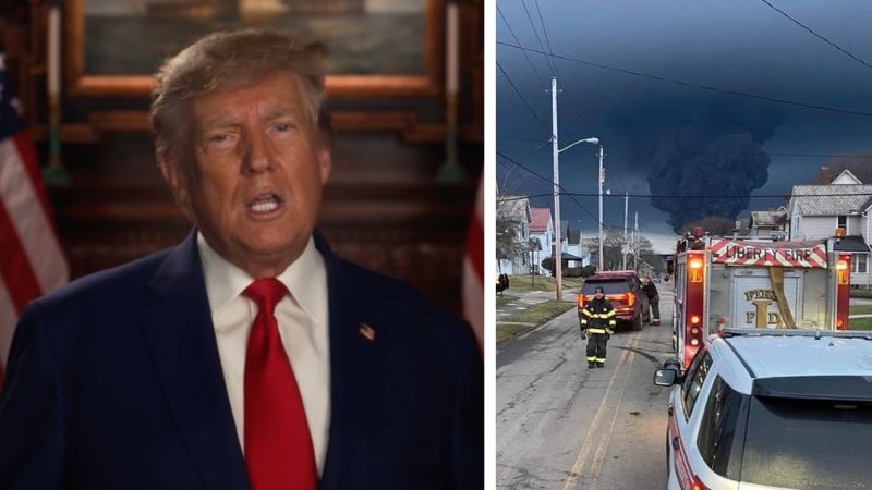 La visita se produce después del descarrilamiento de un tren Norfolk Southern a principios de este mes, que transportaba materiales peligrosos como el cloruro de vinilo, un producto químico utilizado para fabricar plásticos de PVC. Como resultado del descarrilamiento, el producto químico comenzó a filtrarse de los coches cisterna, y se decidió que una quema controlada de los productos químicos era el mejor curso de acción para evitar una explosión.