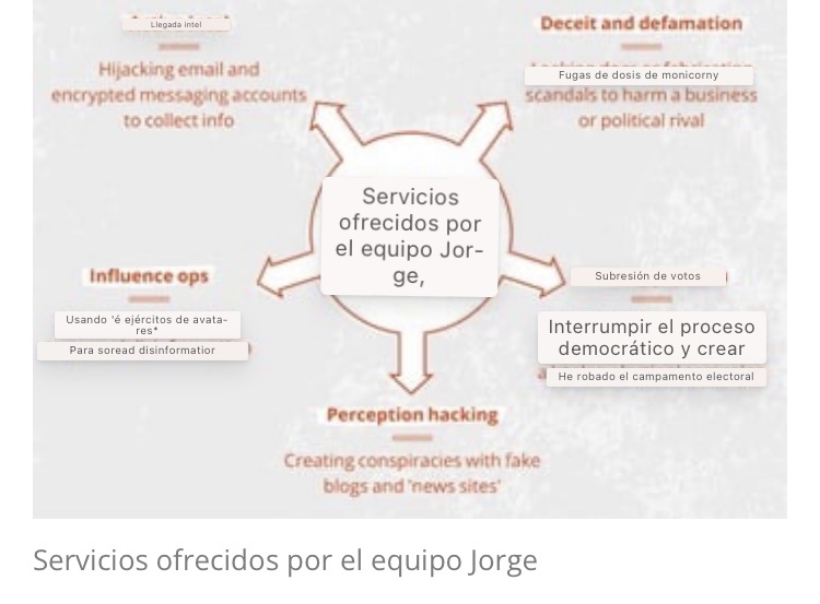 El equipo Jorge, como se llama los informes, afirma haber llevado a cabo campañas de desinformación y manipulación durante más de una década (o Manipulación e Intervención de Información Extranjera -FIMI), y que a veces se atribuían a China y Rusia, interfiriendo en 33 elecciones presidenciales, 27 de las cuales tuvieron éxito.