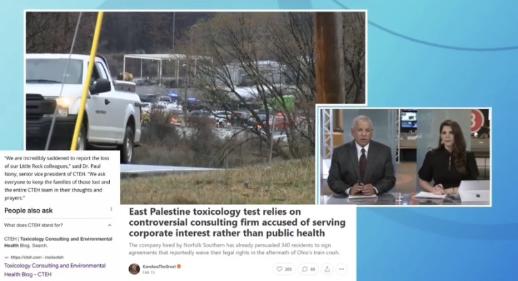 Mientras tanto, detener el viaje de los científicos no haría ninguna diferencia, ya que CTEH ya tiene empleados en el terreno en el lugar del descarrilamiento del tren. La compañía, según su sitio web, opera actualmente en entre 100 y 200 sitios de trabajo diferentes en Ohio. CTEH también tiene miles de otros contratos en curso en casi todos los estados del país.
