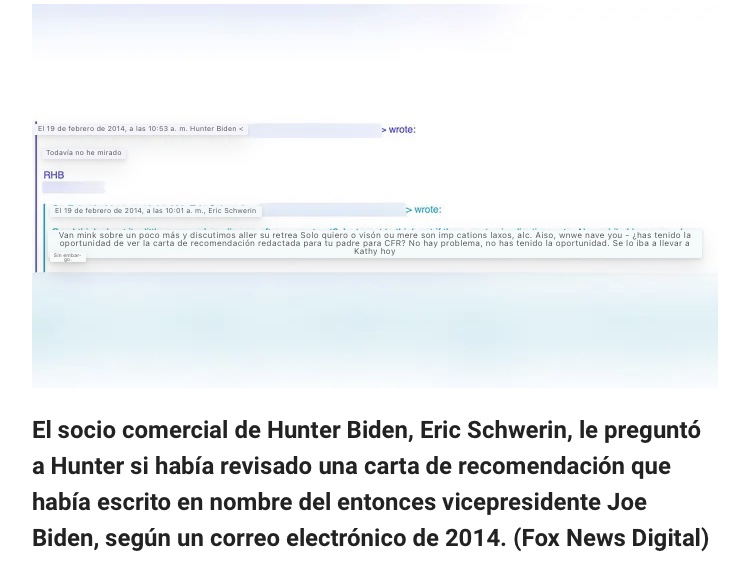 Un correo electrónico que hacía referencia a la carta de recomendación era para «CFR», que podía referirse al Consejo de Relaciones Exteriores, pero Fox News Digital no pudo confirmar que esto es a lo que se refería el acrónimo.