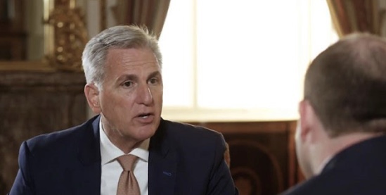 La entrevista de McCarthy fue grabada como parte del último video especial de On The Hill de Breitbart News, una larga serie de entrevistas y especiales en profundidad. Anteriormente se sentó para uno grabado a finales de 2021 y publicado en enero de 2022 que sentó las bases para el mensaje de mitad de mandato de los republicanos de la Cámara de Representantes. McCarthy, en ese especial, detalló por primera vez la agenda del Partido Republicano de la Cámara de Representantes sobre el «Compromiso con Estados Unidos» e hizo varias promesas importantes, entre ellas que eliminaría a los representantes. Adam Schiff (D-CA) y Eric Swalwell (D-CA) del Comité de Inteligencia de la Cámara de Representantes y el representante Ilhan Omar (D-MN) del Comité de Asuntos Exteriores de la Cámara de Representantes si es elegido orador. Más de un año después, a los pocos días de ser elegido presidente, McCarthy cumplió esas promesas y echó a Swalwell, Schiff y Omar de esos comités.