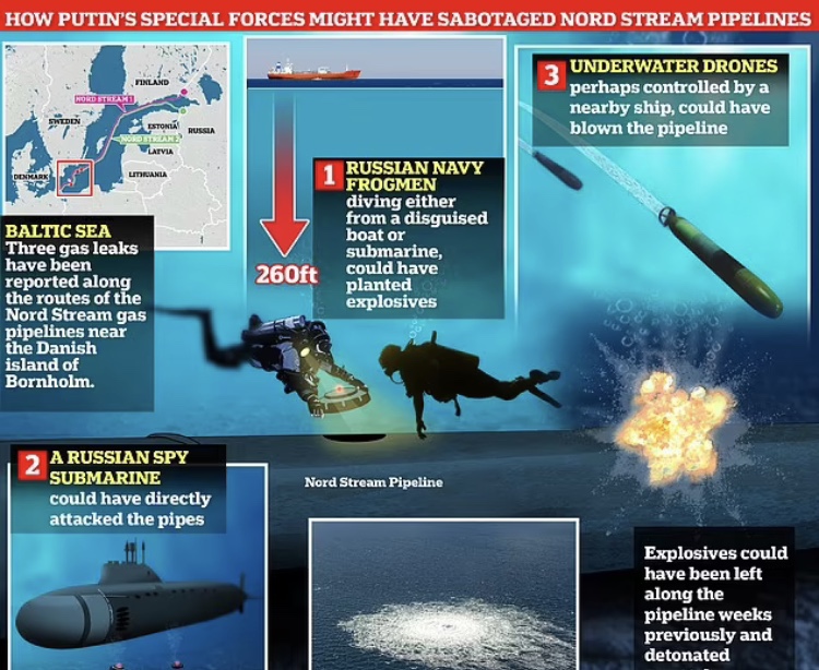 Estos son los ingredientes de una nueva teoría convincente que está empezando a surgir para los ataques con bombas sin resolver contra los oleoductos Nord Stream 1 y 2 de 20 mil millones de dólares el 26 de septiembre de 2022.