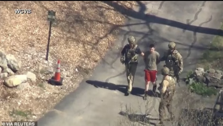 El vídeo grabado por el canal de noticias WCBV, con sede en Boston, capturó el momento en que un joven de 21 años fue detenido pocos minutos después de que un reportero del New York Times intentara llamar a su puerta principal.