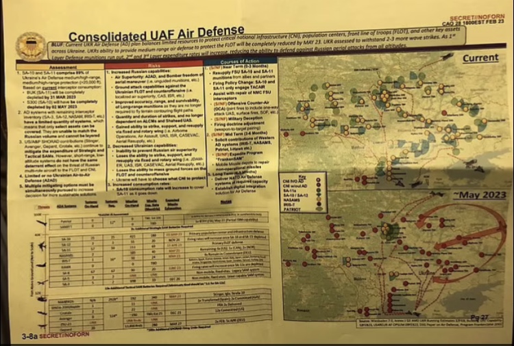 La inteligencia incluida en los archivos ha incluido información que sugiere que Ucrania pronto se quede sin artillería y que podría arriesgarse a las fuentes de inteligencia de EE. UU. en todo el mundo.