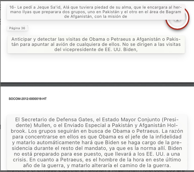 «No van a apuntar a las visitas del vicepresidente de EE. UU. Biden. Los grupos seguirán en busca de Obama o Petraeus», escribió bin Laden.