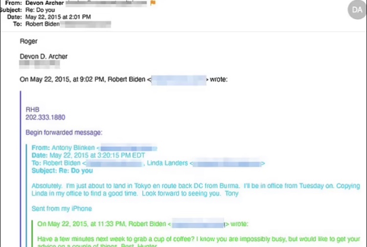 El 22 de mayo de 2015, Hunter escribió a Blinken preguntándole si tenía unos minutos la próxima semana para tomar una taza de café. Sé que estás increíblemente ocupado, pero me gustaría recibir tu consejo sobre un par de cosas».