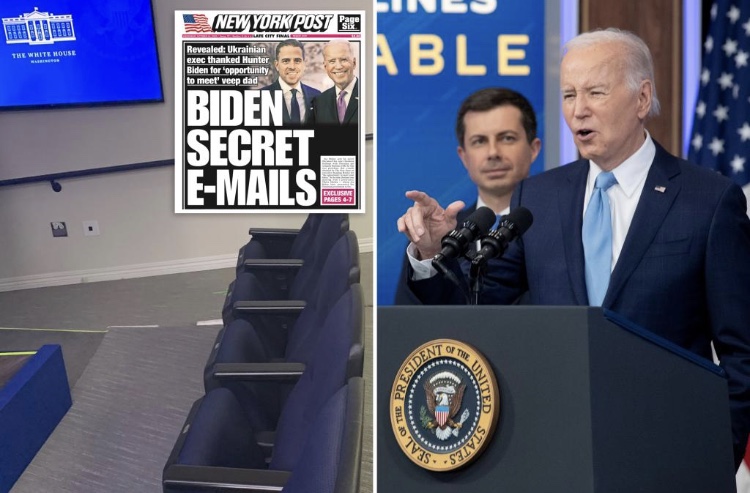 Biden, que caracterizó falsamente el informe de The Post como desinformación rusa, apareció con el secretario de Transporte, Pete Buttigieg, para hablar sobre las políticas de las aerolíneas en el edificio de oficinas ejecutivas Eisenhower adyacente a la Casa Blanca.