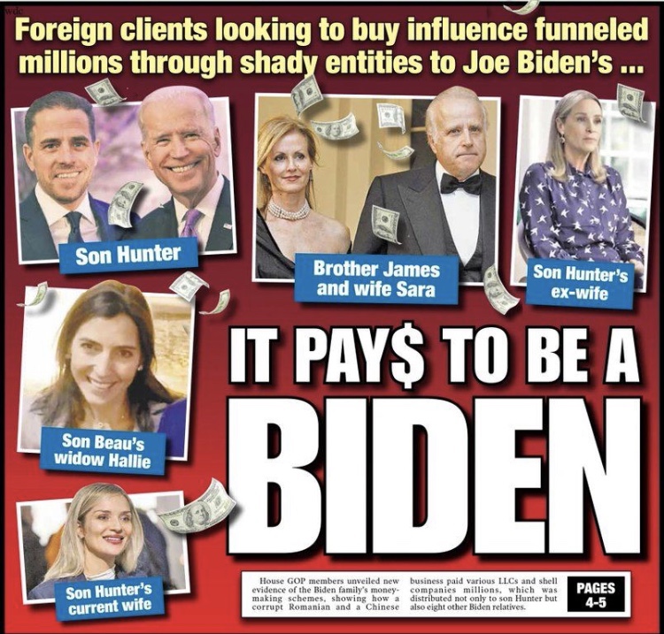 «El hijo de Joe Biden [Hunter], el hermano de Joe Biden [James], la esposa del hermano de Joe Biden [Sara], la novia de Hunter Biden o la viuda de Beau Biden [Hallie], sin embargo, quieres escribir eso, la ex esposa de Hunter Biden [Kathleen Buhle], la actual esposa de Hunter Biden.