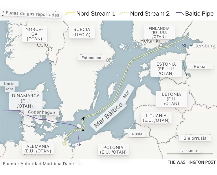 El 26 de septiembre, tres explosiones submarinas causaron fugas masivas en los gasoductos Nord Stream 1 y 2, dejando intacta solo uno de los cuatro enlaces de gas de la red. Algunos funcionarios de la administración Biden sugirieron inicialmente que Rusia era la culpable de lo que el presidente Biden llamó «un acto deliberado de sabotaje», prometiendo que Estados Unidos trabajaría con sus aliados «para llegar al fondo de exactamente lo que… sucedió». A medida que se acercaba el invierno, parecía que el Kremlin podría haberintencionado estrangular el flujo de energía, un acto de «chantaje», dijeron algunos líderes, diseñado para intimidar a los países europeos para que retiraran su apoyo financiero y militar a Ucrania, y se abstenieran de más sanciones.