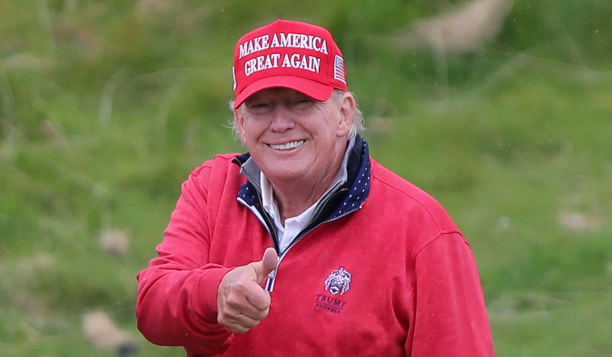 El expresidente Trump juega al golf en el campo Trump International Golf Links en Doonbeg, Irlanda, el 4 de mayo de 2023.