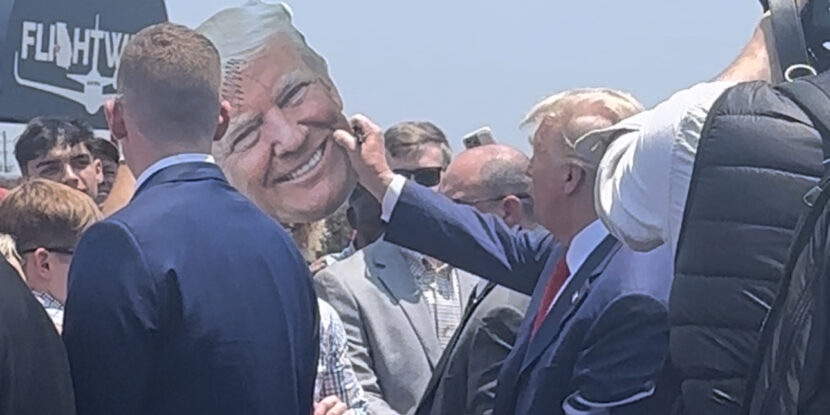 Aterrizó con multitudes de seguidores, caminando por la línea, dándose la mano, mientras los fans cantaban «¡cuatro años más!» así como «te queremos». Las calles fuera del aeropuerto también estaban llenas de partidarios mientras la caravana del ex POTUS viajaba a la convención del Partido Republicano.