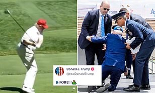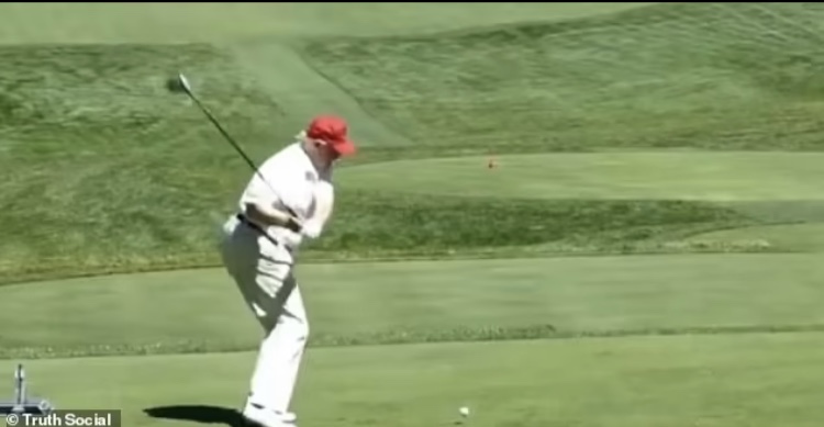 Publicó un video de sí mismo golpeando una pelota de golf que fue editado para golpear a Biden en el momento exacto en que el presidente octogenario se cayó en el escenario de la Academia de la Fuerza Aérea de los Estados Unidos en Colorado.