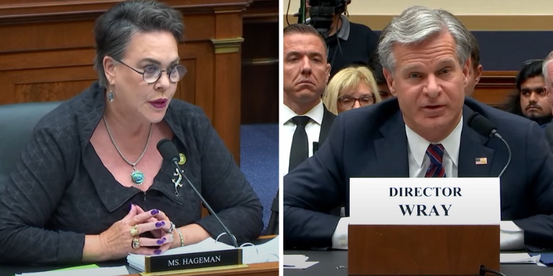 Durante la audiencia del comité, la representante republicana Harriet Hageman investigué al director del FBI sobre la participación del FBI «por poder» en el cierre de la libertad de expresión de los ciudadanos estadounidenses en línea.