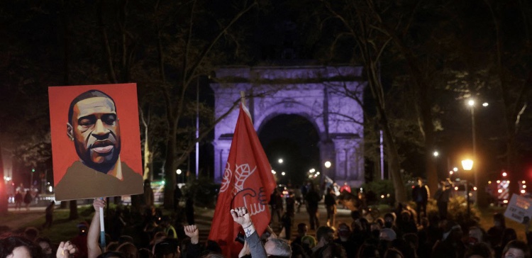 Las protestas en la ciudad de Nueva York y en todo el país siguieron a la muerte del 25 de mayo de 2020 de Floyd, un hombre negro desarmado asesinado por un oficial de policía de Minneapolis que se arrodilló en el cuello de Floyd durante unos nueve minutos mientras gritaba repetidamente pidiendo ayuda, diciendo «No puedo respirar».