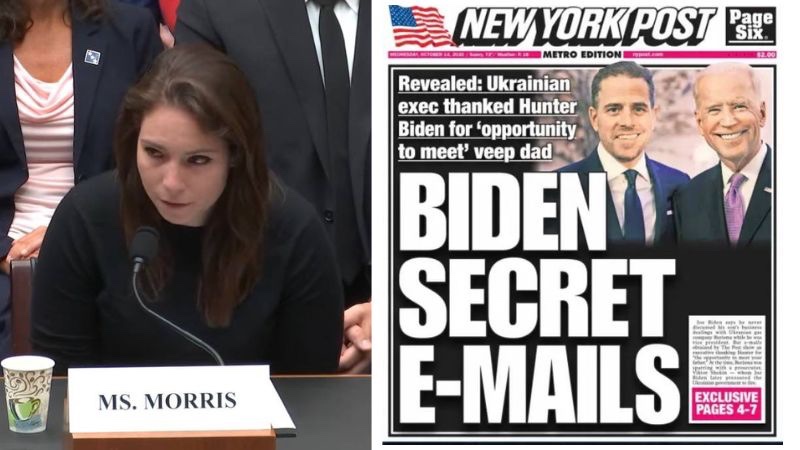 Morris dijo que el 19 de octubre de 2020, Politico publicó una historia con el título «La historia de Hunter Biden es la desinformación rusa», que incluía la carta firmada por más de 50 ex funcionarios de la comunidad de inteligencia que afirmaba que la historia tiene «todas las características clásicas de una operación de información rusa».