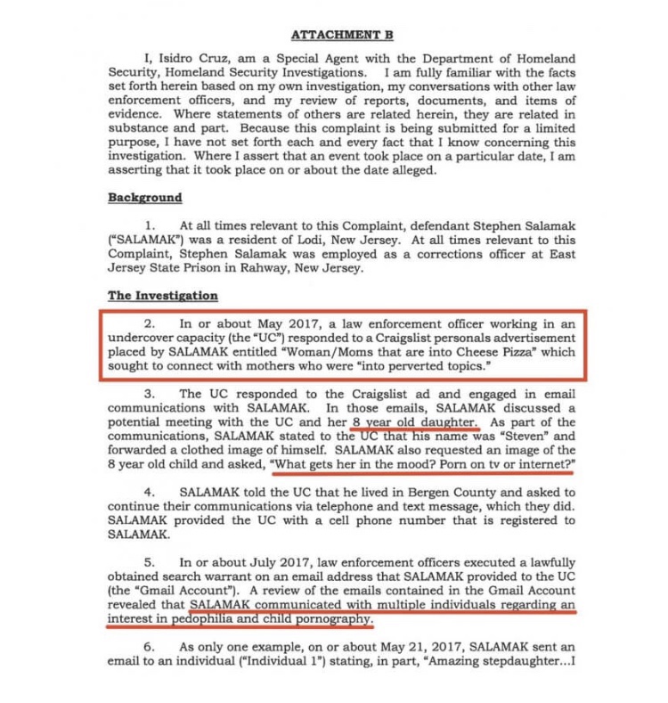 Sin embargo, Pizzagate en realidad se remonta a décadas antes de la publicación de esos correos electrónicos, y solo recientemente fue etiquetado como «Pizzagate». Sin profundizar en Pizzagate, ya que sería un artículo completamente separado en sí mismo, limitemos esto a dos hechos que conocemos con una validación del 100%. 1) Mientras que John Podesta niega estar involucrado con niños de manera sexual, en ningún momento aborda o explica el lenguaje sospechoso en sus correos electrónicos. 2) Un oficial encubierto puso un a picadura en Craigslist porque Stephen Salamak, un oficial de prisiones de Nueva Jersey, había enviado un mensaje buscando mujeres y madres «a las que les gusta la pizza de queso», una referencia a la pornografía infantil. Todo esto se indica en la acusación. El hombre fue acusado, se encontraron numerosas fotos de pornografía infantil en su ordenador, y el 27 de julio de 2018 presentó una declaración de culpabilidad con una sentencia mínima obligatoria de 5 años.
