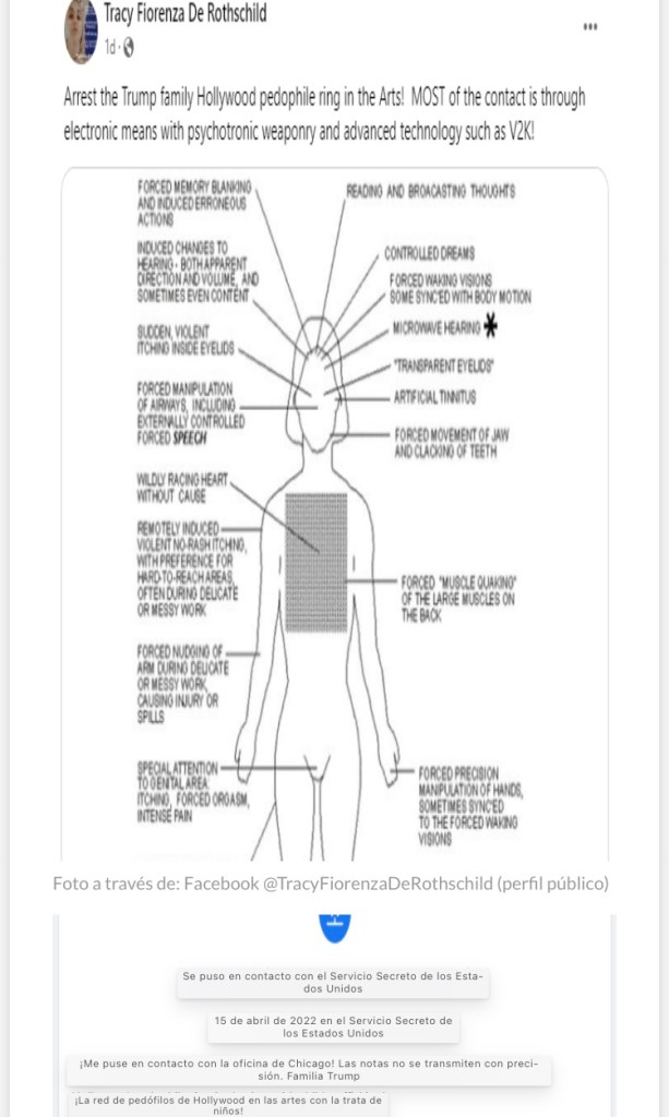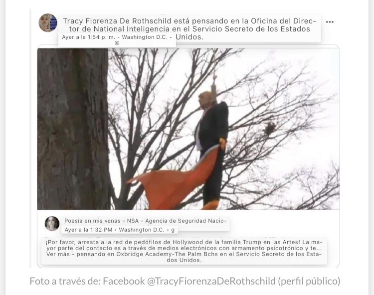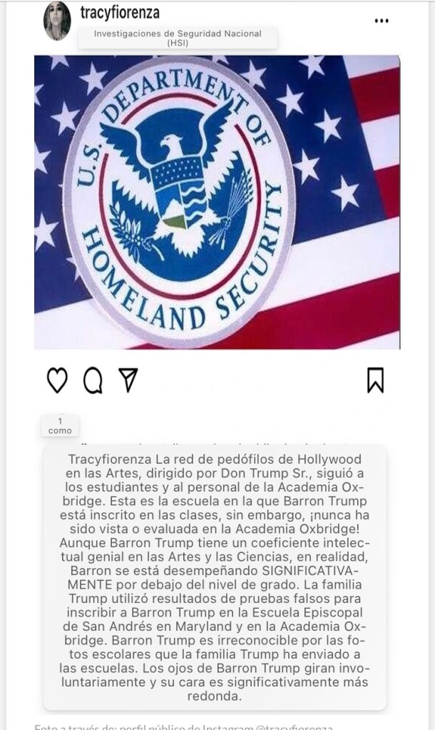 La presencia de Fiorenza en las redes sociales también dejó claro que es una extremista de extrema izquierda y teórica de la conspiración que a menudo menciona tanto a Donald Trump como a su hijo Barron. Además, afirma estar en la sociedad secreta «Illuminati».
