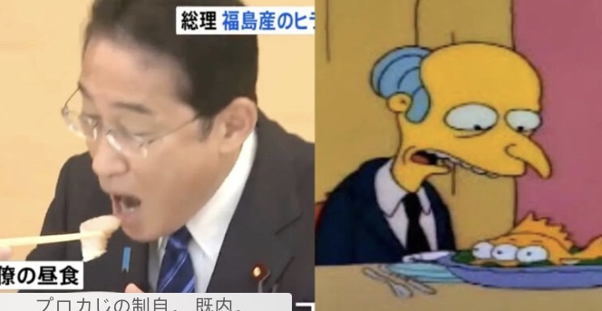 Mientras que los países vecinos, especialmente China, han criticado a Japón por la liberación de aguas residuales, el truco de Kishida de comer sashimi de pescado de Fukushima tenía como objetivo restar importancia a estas preocupaciones. Este gesto recuerda a la aparición del Sr. Burns en «Los Simpson», donde intenta comer un pez de tres ojos para contrarrestar el miedo público.