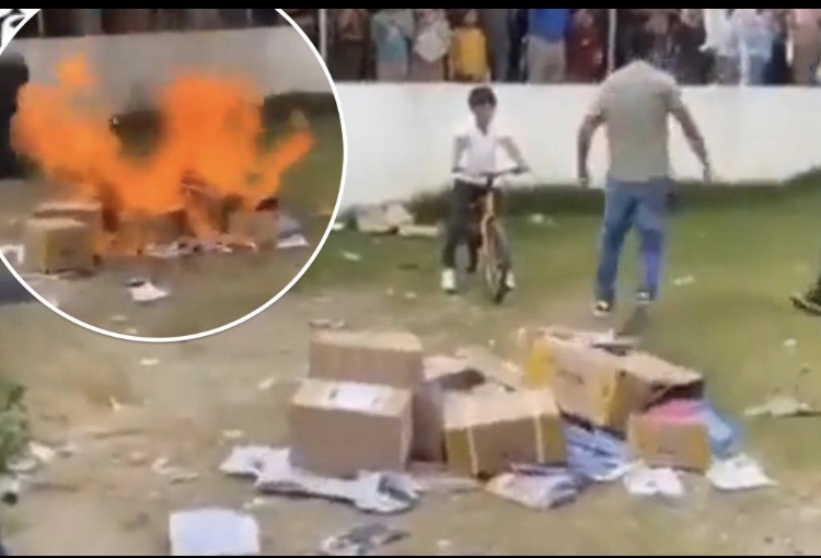 «En la escuela primaria de Chiapas… los padres de la comunidad amontonaron cajas de los nuevos libros de texto, las rociaron con combustible y las enciaron», informó el medio.