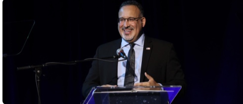 El secretario del Departamento de Educación, Miguel Cardona, borró un tuit el martes que mostraba su lista de reproducción de música para su gira en autobús después de la reacción de los defensores de la educación, que expresaron su preocupación por la blasfemia y las referencias sexuales en las canciones.