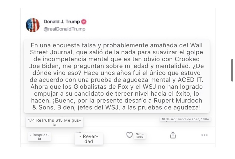 El presidente Trump criticó el Wall Street Journal y luego desafió a Joe Biden, Rupert Murdoch, sus hijos zurdos y los peces gordos del Wall Street Journal a una prueba de agudeza.